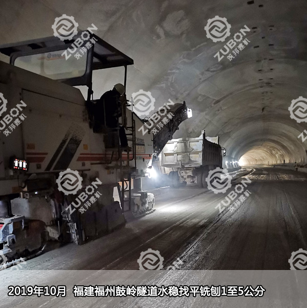 2019年10月初,筑邦維特根銑刨機(jī)W2000在福州鼓嶺隧道施工,水穩(wěn)找平銑刨1至5公分。