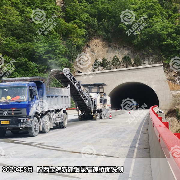 2020年5月新建銀昆高速陜西寶雞段橋面銑刨,此次上陣的是0.5米銑刨機W50H,主要配合大型2米銑刨機完成橋面邊角銑刨。