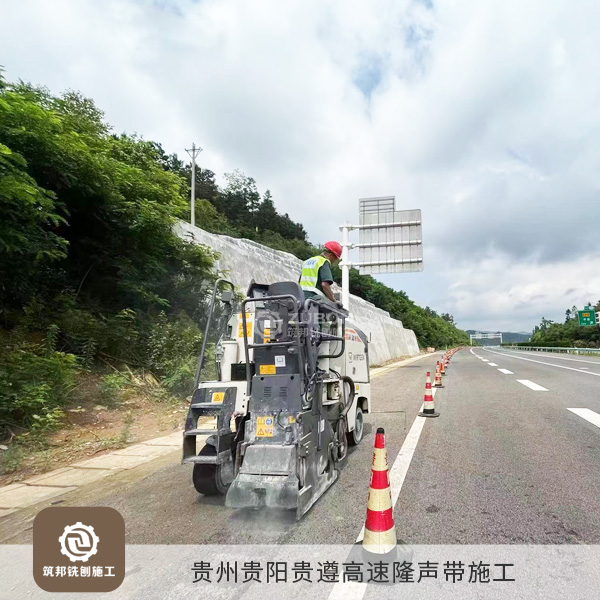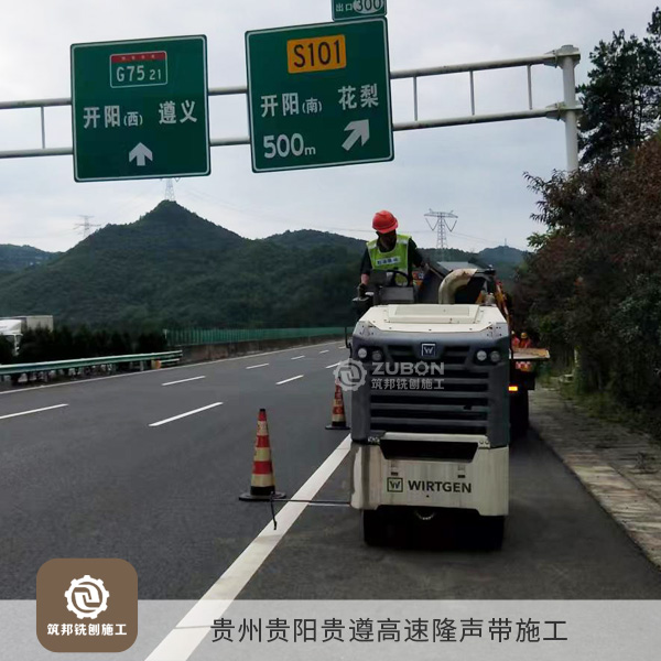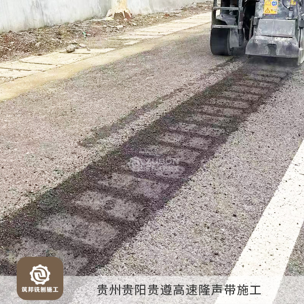 本次隆聲帶施工用到的是專業(yè)隆聲帶銑刨機(jī),施工效率高,一天可銑刨10公里,銑刨出來的隆聲帶效果極佳;凹槽最深為13mm,截面為圓弧狀,因?yàn)樯疃容^淺,積水和積塵很容易被車輪的高速氣流帶走。而且連續(xù)高密度的凹槽寬度達(dá)到40公分以上,在制造輪胎噪音的同時(shí)也保證了車胎足夠的抓地摩擦力,確保了行車安全。