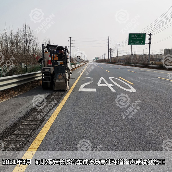 凹槽狀的隆聲帶是由半米小型銑刨機(jī)施工的,一般的規(guī)格是150*400mm,凹槽最深為13mm,截面為圓弧狀。凹槽狀的隆聲帶克服了凸塊隆聲帶的弊端,而且因?yàn)樯疃容^淺,積水和積塵很容易被車輪的氣流帶走,而且連續(xù)高密度的凹槽寬度達(dá)到40公分以上,在制造輪胎噪音的同時(shí)也保證了車胎的抓地摩擦力,確保了行車安全。