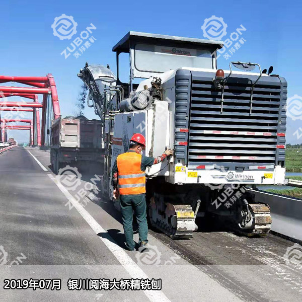 2019年7月,筑邦建機維特根2000銑刨機在銀川城北地標------閱海大橋上進行超精銑刨施工。維特根精銑刨機W2000,自帶MOBA六點激光找平系統.精銑刨機出租