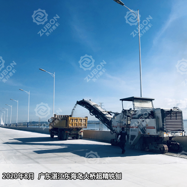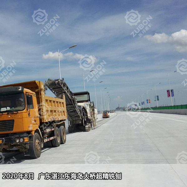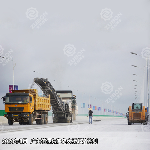 2020年8月廣東湛江東海島大橋超精銑刨,繼6月超精銑刨試驗段測試滿意后,原班人馬再赴東海島大橋完成剩余60000㎡橋面精銑刨作業(yè),維特根精銑刨機W2000搭配700多把刀頭銑鼓,精銑刨完后直接開放交通。